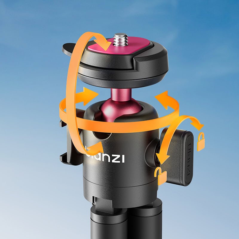 - 360° Ball Head – Full 360° horizontal pan and 90° tilt for any shooting angle — horizontal, vertical, overhead, or low-angle.