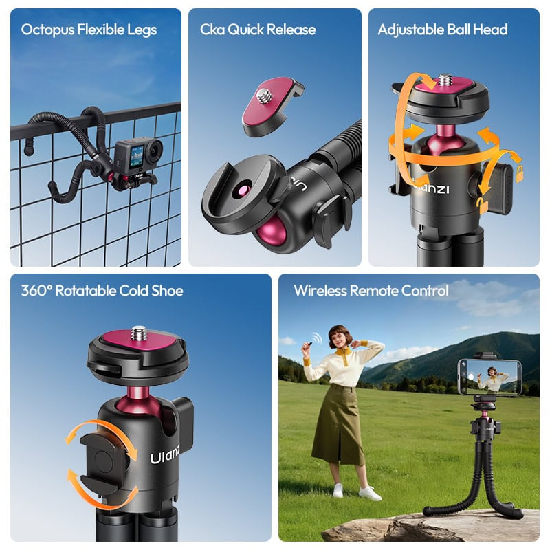 - Shape It Anywhere, Shoot Steady Everywhere – Flexible octopus legs bend and grip any surface, from rocky terrain to slippery pipes. Rock-solid stability wherever you shoot.